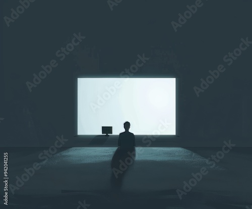minimalist, person, staring, computer, screen, dark, room, simple, design, high, contrast, image, photo, modern, clean, visual, setting, contemporary, minimal, scene, high-coloured, creative, high-quality, layout, space, vibrant, minimalistic, interior, gallery, television, business, wall, three-dimensional, home, empty, door, flat, frame, television, art, furniture, lcd, silhouette, museum, floor, exhibition, motion picture, light, show