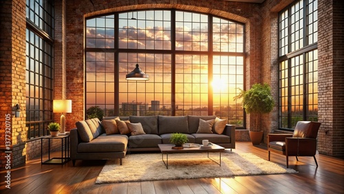 Minimalist Industrial Loft Living Room Silhouette - Cozy & Warm Evening