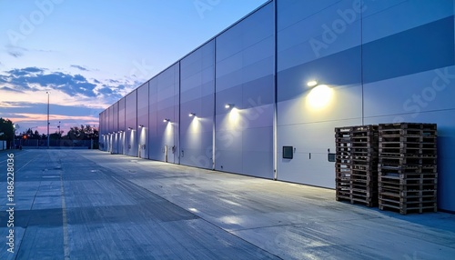 Minimalist Industrial Storage Area with Stacked Pallets at Dusk