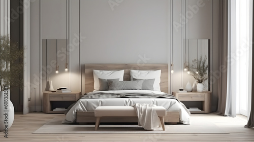 Minimalist Interior of modern living room 3D rendering, generative ai