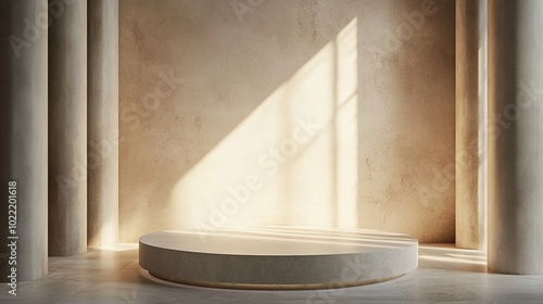 Minimalist Interior with Soft Light and Round Podium