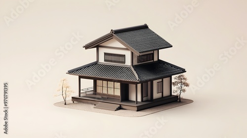 house, building, architecture, home, design, japanese, minimalist, zen, three-dimensional, model, isometric, render, structure, roofing, exterior, residential, traditional, art, decor, style, modern, abstract, minimal, dwelling, abode, lodging, domicile, edifice, habitation