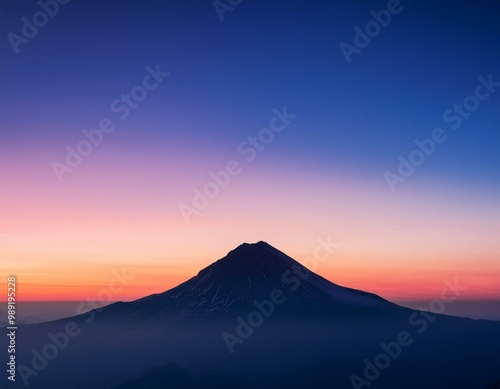 minimalist landscape. Solitary mountain peak silhouetted against gradient sky