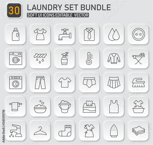 laundry, icon, set, vector, line, clothes, washing, clean, soft, garment, textile, machine, appliance, detergent, faucet, buttons, shirt, water, dripped, hanger, sock, ironing, underclothing, hygiene, freshness, pictogram, linear, contour, uniform, sprinkler, thermometer, skirt, towel, bucket, tissue, singlet, stack, style, simplistic, graphic, bundle