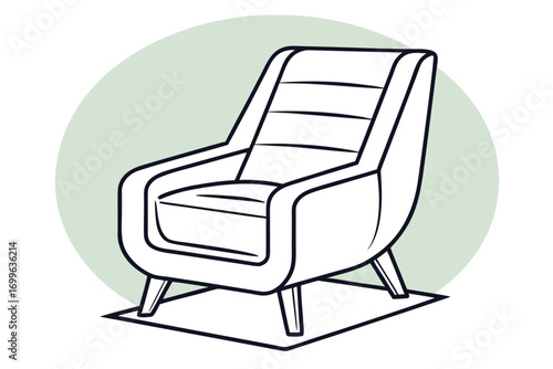 armchair, chair, furniture, interior, design, modern, minimalist, line art, illustration, drawing, simple, clean, isolated, graphic, object, home, living room, comfort, seating, single, outline, icon, vector, white, green, circle, background, contemporary, elegant, stylish, comfortable, cosy
