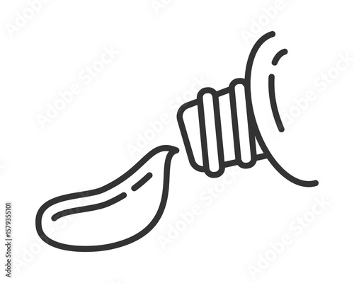 Minimalist line art of a squeezed tube, dispensing product. Versatile for health, beauty, or creative projects. Symbolizes dispensing, creation, and personal care routines.