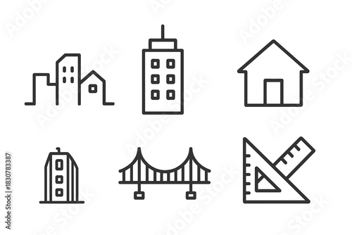 Minimalist line symbols for architecture, urban planning, construction, and engineering