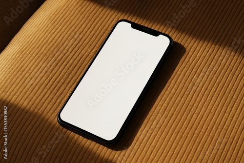 Minimalist Modern Smartphone with Blank White Screen on Ochre Corduroy Fabric – Tech Mockup