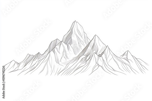 mountain, peak, landscape, minimalist, black-and-white, architectural, angular, technical, geometric, abstract, modernist, contrast, sharp, silhouette, monochrome, graphic, design, nature, scenic, environment, alpine, ridge, summit, slope, monumental, rugged, majestic, grandiose, imposing, craggy, jagged, serrated, pinnacle, massif, escarpment, elevation, topographic, terrain, cliff, illustration, mountain