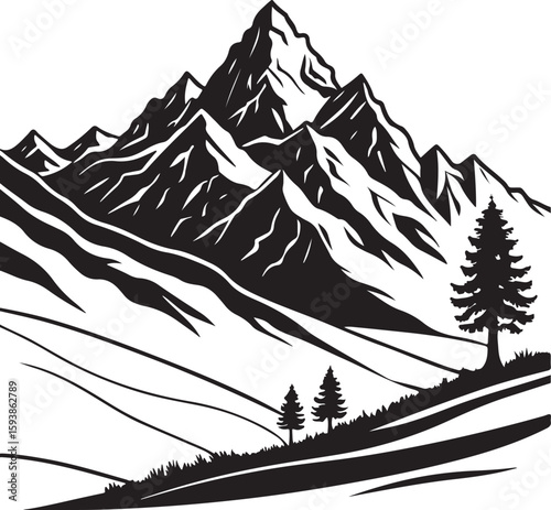 Minimalist Mountain Range Silhouette with Trees