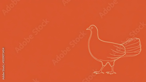 bird, poultry, fowl, chicken, rooster, cockerel, hen, chick, water bird, avian, feather, wing, beak, crest, comb, wattle, orange, red, colours, minimal, minimalist, abstract, geometric, silhouette, outline, simple, line, art, graphic, illustration, vector, design, artwork, background, empty, copy, space, negative, wallpaper, pattern, texture, icon