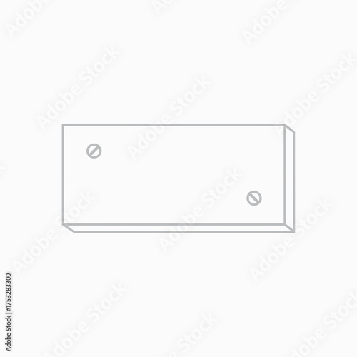 Minimalist outline icon of a rectangular plate or panel fastened with two screws, a simple technical line art vector illustration on a white background