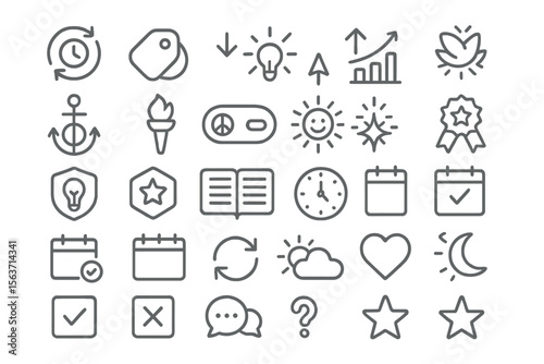 Minimalist outline icons for mood, time, goals, and wellness themes