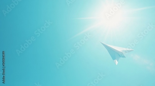 Minimalist paper plane flying under a bright clear blue sky generative ai