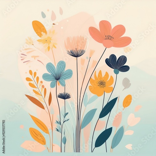 Minimalist Pastel Botanical Art – Modern Floral Illustrations for Elegant Décor & Design