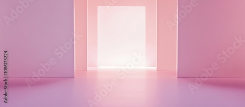 Minimalist pink interior space with soft lighting and empty doorway creating a serene and modern atmosphere for design or background use.