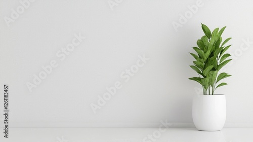 Minimalist Plant in White Pot on White Background
