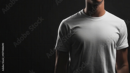 Minimalist Portrait of a Man in a White T-Shirt Against a Dark Background Highlighting Modern Fashion and Simplicity