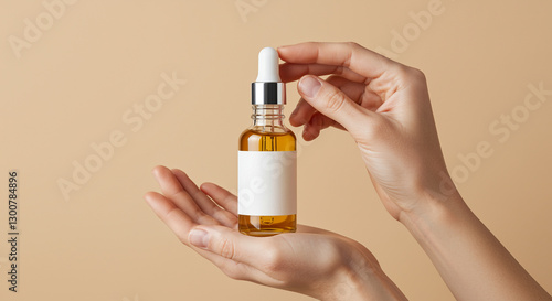 Minimalist skincare dropper bottle held by elegant hands