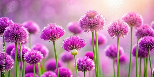 Minimalist Spring Wild Chives Blossoms: Pink & Purple Allium Schoenoprasum Flowers