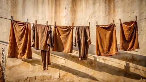 Minimalist Still Life of Brown Clothes Drying in Natural Light, Showcasing Textures and Tones of Earthy Hues in a Serene Outdoor Setting for a Calm Aesthetic