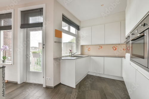 home, kitchen, interior, minimal, style, design, white, open space, loft, modern, furniture, apartment, corner, residential, geometry, simple, dwell, estate, appliance, house, architecture, decor, cupboard, domestic, counter, light, housing, structure, furnish, fragment, oven, object, household, door, place, roomy, property, sink, real estate, indoor