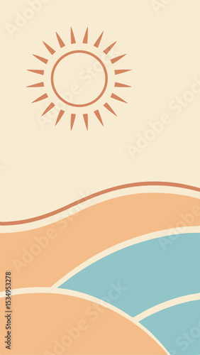 sun, landscape, abstract, minimal, pastel, colours, earthy, trendy, artistic, modern, design, illustration, graphic, background, transparent, layered, shape, wave, line, creative, digital, decorative, art, summer, warm, simple, neutral, aesthetic, texture