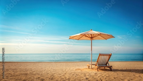 Minimalist sun lounger under umbrella by the coast