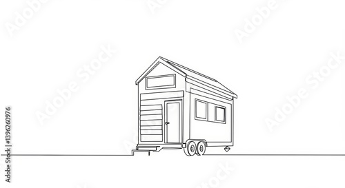 tiny, house, minimalist, line, drawing, architecture, home, single, continuous, black, design, simple, outline, structure, property, residence, dwelling, transportable, portable, construction, real, estate, accommodation, building, geometric, contour, clean, refined, contemporary, modern, artistic, artwork, schematic, vignetting, graphic, habitation, lodging, compact, mobile, shelter, carriage, minimalistic, 1