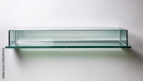 minimalist transparent glass shelf with a sleek modern design perfect for contemporary interior decor and storage solutions isolated on white background