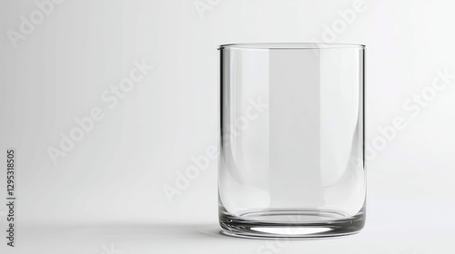 Minimalist Transparent Glass Tumbler on White Surface Simple Elegant Design Clean Aesthetic Visual