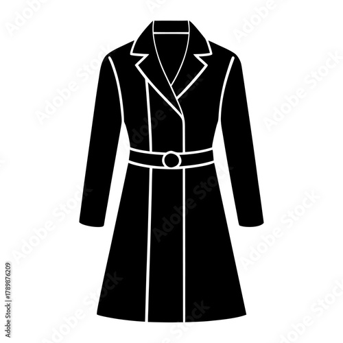 trench, coat, winter, fashion, woman, stylish, buttons, long, silhouette, minimalist, vector, icon, isolated, white, background, outerwear, casual attire, elegant, chic, modern, clothing, apparel, warm, seasonal, garment, simple, trendy, classic, clothes rack, professional, layered, winter fashion, clean, sleek, outfit, white background