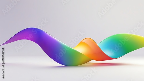 Minimalist vector graphic with a white background, featuring a bold, flowing ribbon in a vibrant gradient from purple-blue to green-yellow to orange-pink, evoking energy, unity, and modernity.