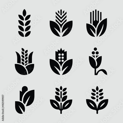 agriculture, vector, icon, crop, wheat, corn, rye, barley, graphic, minimalist, symbol, nature, farm, harvest, field, food, plant, design, set, illustration, organic, logotype, collection, simple, silhouette, isolated, vegetarian, vegan, growth