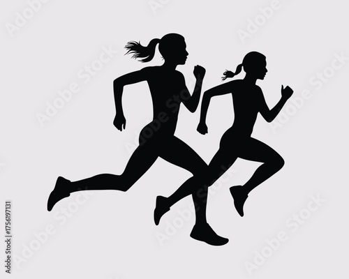 Minimalist vector illustration silhouette of two women running race endurance athletic sport competition vector illustration white background