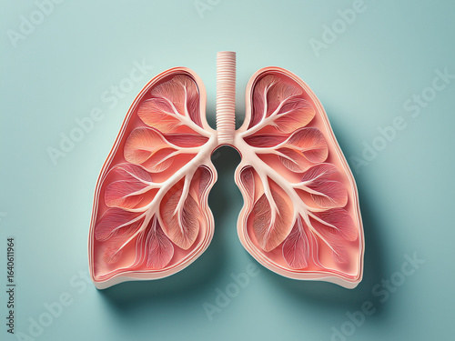 Minimalist vector lung slice showing bronchi and bronchioles for child-friendly science education