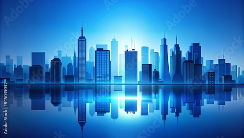 city, urban, skyline, building, architecture, blue, vibrant, minimalist, serene, peaceful, tranquil, modern, contemporary, city landscape, skyscraper, structure, silhouette, dusk, evening, night, light, glow, aerial view, quiet