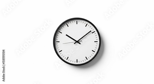 Minimalist Wall Clock: Black Frame, White Face, Precise Timekeeping on White Background