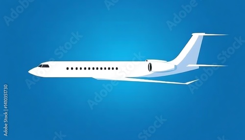 Minimalist white airplane silhouette on a vibrant blue background for aviation themes,
