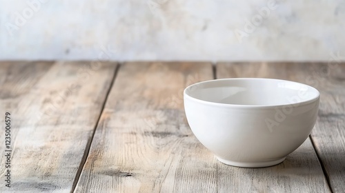 Minimalist White Ceramic Bowl on Rustic Wooden Table : Generative AI