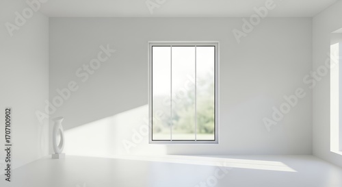 Minimalist White Empty Room with Large Window and Natural Light Interior