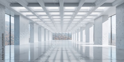 Minimalist White Hallway with Empty Space for Modern Interior Design