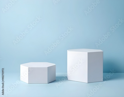 Minimalist White Octagonal Display Platforms on Light Blue Background
