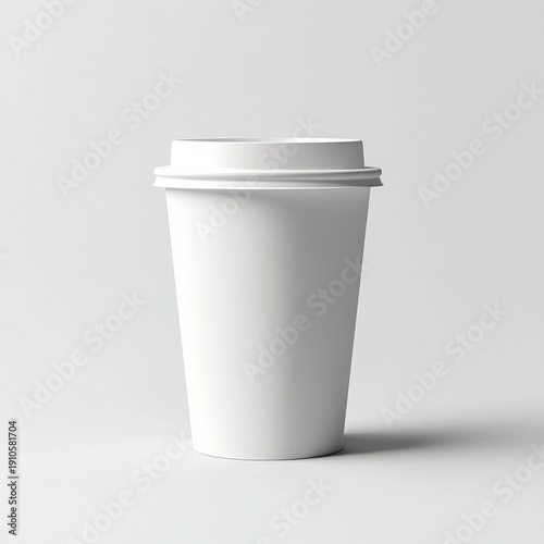 Minimalist White Paper Coffee Cup on Plain Background for Beverage Mockup or Design Project in Creative Workspace Environment