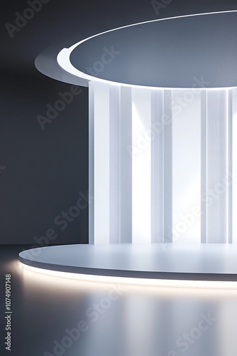 Minimalist White Platform with Circular Ceiling and Strip Lighting