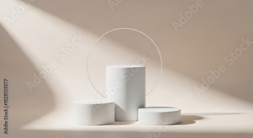 Minimalist white podiums with soft light and shadow