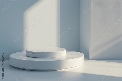 Minimalist white product display podium with soft light and shadows perfect for showcasing items