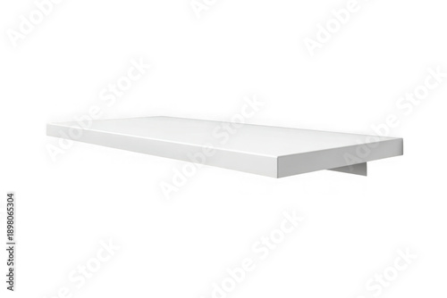 Minimalist white rectangular shelf floating isolated on transparent background