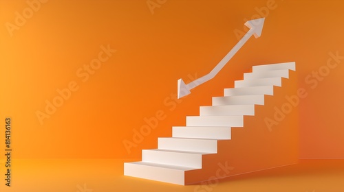 growth, success, staircase, minimalist, business, progress, ascent, three-dimensional, conceptual, white, design, modern, symbolic, vision, aspiration, upward, arrow, orange, background, simple, clean, corporate, illustration, achievement, innovation, strategy, ambition, opportunity, climb, rise, goal, motivation, financial, investment, leadership, development, stair, projection, trendy, ai