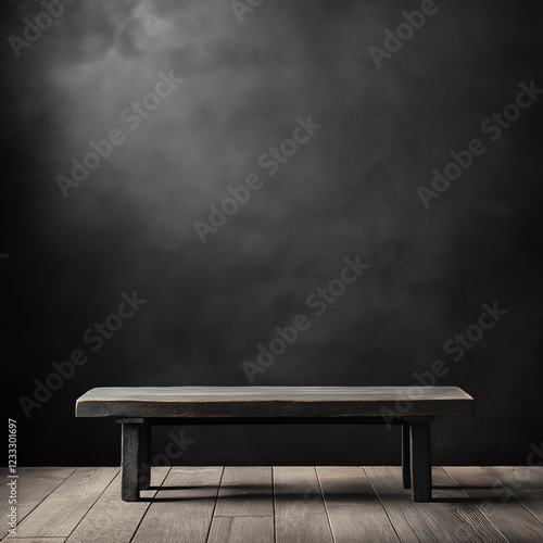 Minimalist wooden bench display studio interior photography showcase neutral background eye-level view modern design concept for seo impact